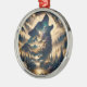 Varg Howling i Måne på en molnig natt Julgransprydnad Metall