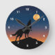 Varg Howling med hel månnatt Himlar och stjärnor Rund Klocka