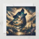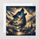 Bild i bild. En varg i måne med berggrund och skogsbakgrund.