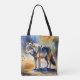 Söt vacker grått-varg som står i en avskiljning i en vattenfärgsmålning i en skog. Perfekt för natur och konst älskare och entusiaster.