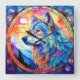 Varg i glasmålning fyrkantig klocka