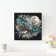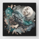 Varg Landskap och Måne Teal Guld Fyrkantig Klocka