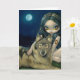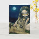 "Varg Måne" är titeln - en delbetalning i min serie Vargar. En vacker flicka (kanske en varg i mänsklig form? en varulv?) sitter framför en fullt med sin elegant varg-följare. Om du tittar noga så ser du att hon har en tatuering av en vargs fotavtryck... Min ursprungliga akrylmålning