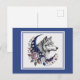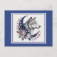 Varg & Månne Postkort - Charmfull Mystisk Varg, Halvmåne, Blommor