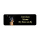 En söt varg på natten med ett halvmåne måne. En dramatisk returadressetikett.