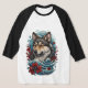 En stor vargs huvud omringad av vinkara och blommande blommor.