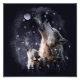 Varg och valp vid måne fototryck