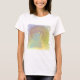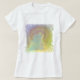 T-shirt med varg som ylar mot månen. Illustrationens detaljer: spetsprydnadsram, blomster-mandala och gren, månstensfärgad päls och gul, grön, violett färg.