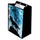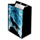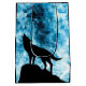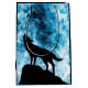Abstrakt geometrisk vinter snöig blå och vit rök med svart varg siluett.