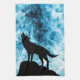 Varg som ylar Vinter snöig blå rök Abstrakt Kökshandduk