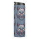 Flerfärgade huvuden av vargar med boho dekoration och helig symboler på grått bakgrund. Sömlös mönster med rovdjurens konturstammar teckning. Vector struktur med djur. Native tapet