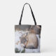 Djurtryck. Foto av en förpackning med varger som sover eller vilar på snö täckt mark. En varg har ögon öppet och tittar på dig.