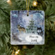Detta prydnadsföremål skapades från en av mina ursprungliga utformningar. Det har en vinterbakgrund, tre konstnärliga vargar och ett Julgran. Det finns ett hälsning på framsidan som säger "Fred på jorden" och ett speciellt hälsning på baksidan. Julprydnaden kommer att se vacker ut på träd.