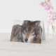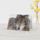 Grå färgvargen (timmervarg) tittar in i kameran, djurlivfotografi.