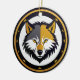 Vargemblemlogotyp med gyllene cirkel julgransprydnad keramik