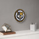 Vargemblemlogotyp med gyllene cirkel rund klocka