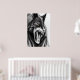 En porträtt av en arg varg som visar alla hans vassa tänder. Det här är en AI-skapad konst.