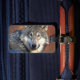 Vargen fotograferar. Ska vargälskare älskar denna fotograferar. Trevlig scenisk höst färgad bakgrund. Grått-/grå färgvarg med gula ögon.
