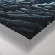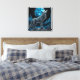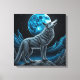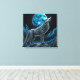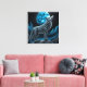 Blå och svart fantasi som skildrar en ensam varg som står på ett berg framför fullt. Ai genererade konst.
