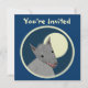 Beställnings- dubbelsidiga inbjudankort. Front har anpassade, "som du är inbjuden". Baksida har information om inbjudan--skriv in din händelsetitel, datera, tajma, läge och ett personligt meddelande. "Skyla över brister vargen för den utklipp" stilhåriget mot en fullmåne, inom gränsad cirklar. Rolig djur design.