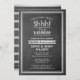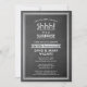 Hh! Kan du behålla en hemlighet? Inbjudan familj och vänner till en elegant och spännande firande med denna inbjudan till överraskningsfest för svarta och silver. Utformningen har en faux chalkboard-bakgrund, modern metallisk utseende rand / gräns och snyggt vintage art deco-inspirerad typografi. Observera att silver är tryckt på färg och inte på metallfolie. Kortet har upprättats för 25:e bröllop-årsdagen, men all text är enkel att anpassa för ett år eller tillfälle.