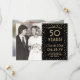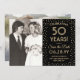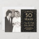 de glatta nyheterna om en kommande milstolpe-årsdag party med anpassningsbar 2-foto sparar datuminbjudningarna. Ordalydelsen i den här mallen är avsedd för en gyllene 50-årsdag för bröllop, men är enkel att anpassa för varje år. Med Zazzle Design Editor verktyg kan du enkelt anpassa färg, font stilar och overlay opacity. Den svarta och guld-designen har ett modernt konkotti gräns, kalligrafi av elegant, vintage av snyggt art deco-typografi och två bilder efter eget val. Observera att guld är tryckt på färg, inte metallfolie eller glitter. Grattisar och Lycklig-årsdagen!
