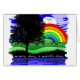 En grafisk målning från The TshirtPainter med sjö, träd, regnbåge och fåglar med Varje dag är Jorden Day. Mycket färgstark och lycklig popkonst.