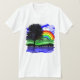 En grafisk målning från The TshirtPainter med sjö, träd, regnbåge och fåglar med Varje dag är Jorden Day. Mycket färgstark och lycklig popkonst.
