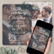 Meddela den glada nyheten om er kommande efterbrölljfest med unika anpassade fotokonceptet "Vi gör det, Vi gjorde det, Vi rymde!" -rädda datum-kort. De 2 bilderna, skannbara QR-koden och all text på denna inbjudan small är enkla att anpassa. (TIP: Ett enkelt sätt att centrera ett foto exakt som du vill är att beskära det innan du laddar upp det till Zazzle-webbplatsen.) Anpassa den för alla typer av firanden, till exempel ett bröllopsfirande, löftesförnyelseceremoni, andra bröllop eller 1-årsfirande. Inkludera datum för äktenskapet, plats, webbplats eller andra viktiga detaljer som du väljer. Den eleganta svart-vita designen har två bilder av det nygifta paret, trendig modern handskriven kalligrafi och stilren skrivmaskinstypografi. Genom att skanna QR-koden med sina telefoner skickas gästerna direkt till bröllopswebbplatsen där de kan se alla viktiga detaljer och komma i kontakt med dig online. Detta stilrena meddelandekort är ett elegant