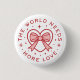 Världen behöver mer kärlek vänlighet fred citat rosa och röd coquette preppy tjejlig hjärta med band estetisk människorättsaktivist protest knapp märke nålar accessoar present
