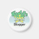 Werelds beste Bloggare magneet. Voor de beste Bloggare in de hele wereld! groene brev en op de achtergrond blauw met een gele ster