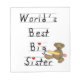 World's Best Big Sister keepébox, plattor, prydnadsföremål, anteckningsböcker, dekorativ kudde, klistermärken, musslor och mer med en nalle med en stor gult penna och en ritad stil-text som lyder "World's Best Big Sister!". Du kan anpassa det ytterligare genom att lägga till ett namn på plats!