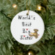 World's Best Big Sister keepébox, plattor, prydnadsföremål, anteckningsböcker, dekorativ kudde, klistermärken, musslor och mer med en nalle med en stor gult penna och en ritad stil-text som lyder "World's Best Big Sister!". Du kan anpassa det ytterligare genom att lägga till ett namn på plats!