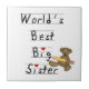 World's Best Big Sister keepébox, plattor, prydnadsföremål, anteckningsböcker, dekorativ kudde, klistermärken, musslor och mer med en nalle med en stor gult penna och en ritad stil-text som lyder "World's Best Big Sister!". Du kan anpassa det ytterligare genom att lägga till ett namn på plats!
