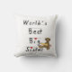 World's Best Big Sister keepébox, plattor, prydnadsföremål, anteckningsböcker, dekorativ kudde, klistermärken, musslor och mer med en nalle med en stor gult penna och en ritad stil-text som lyder "World's Best Big Sister!". Du kan anpassa det ytterligare genom att lägga till ett namn på plats!