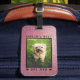 Säg till dem att du är "världens bästa Hund Mamma" med den här roligt anpassningsbarna bagagetaggen med svart tass avtryck över en bakgrund från ro guld glitter. Anpassa den med ditt värdefulla marionettfoto i det svarta ram.