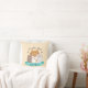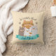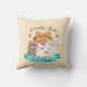Bekväma illustrationer av bruna, grått och vita katter med ribbon, tassar, prickad beige bakgrund och texten "World's Best Cat Mamma" på dekorativ kudde.