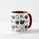 Mugg har en mönster av söt tecknad katt ansikte i svart och vitt. Vid grund står det med rött "Världens bästa Kat Mamma". Perfekt för Mors dag eller när som helst! *Tack till Soul Clipart World för bilder i den här designen.