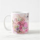 Världens bästa Mamma-Mors dag-kaffe Mugg. Perfektens gåva till mamma för en Mors dag-gåva. Design har ett guld-hjärta och en rosa blommigts vattenfärgbakgrund.