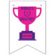 Denna girlang banner har orden "Världens Bästa Mamma" i en årskurs fetstil med lila bokstäver plus en segrarekrans med nummer 1 i mitten över en rosa flat kopp trofé på en lila bas i denna Mors dag-tema. Alla banners har enkelsidig utskrift utomhus säker tillverkad av robust plast polystyren och tjock plast rep har (16) 5.5" x 8" svalor flaggor på en 6' lång sträng.