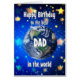 Fira pappa med en kosmisk tvist! Det här kortet har en hisnande syn på jorden från rymden, med det hjärtliga budskapet "Grattis på födelsedagen till världens bästa pappa". Ett perfekt sätt att visa hur mycket han elak till dig - oavsett avstånd är han alltid ditt nummer ett.