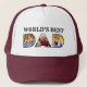 Den här moderna truckerkepsen för personlig för far har en tre fotosamlingskonstruktioner som lyder "Världens bästa Pappa". Fyll i texten med dina favoritfoton från familjen för en unik gåva till far. Designad av ©Susan Coffey.