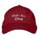 Om du tänka din Mamma bara är den bästa... så blir det en underbar gåva till henne för morförälderns dag...speciellt avsedd för en ny Oma så hon kan skryta om sin nya stora baby, men det kan vara för vilken fantastisk Oma som helst! Texten "World's Best Oma" i vitt brodery på ett rött tak för boll, men du kan naturligtvis anpassa texten, d.v.s. byta Oma till ditt namn för mormor, ändra stavningen, färg/stil i hatten och även broderiet om du vill! Coola! Se nedan för samma hatt i ett annat färg för att se vad jag elak. Kontakta mig om du behöver hjälp genom länken "Skicka meddelande" på min hemsida, eller "kontakt"-länken under produktavbildningen...Jag kommer att vara lycklig för att hjälpa till!