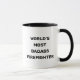 World's Mest Badass Firefighter Coffee Mugg med svart och fet text. Du kan personlig den genom att ändra frasen "World's Most Badass Firefighter" till ditt eget val. Perfekt rolig brandsläckningsutrustning för brandsläckare eller förstahjälparbetare som kärlek pun eller humor-textdesign. Det kan också ges som en födelsedagspresent eller julklapp till din bästa vän, släkting, pojkvän eller flickvän som är en badass brandman. Utformningen passar också in i tid för nationella första svarsdagen.
