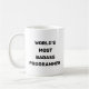 World's Mest Badass Programmer Coffee Mugg med svart och fet text. Du kan personlig den genom att ändra frasen "World's mest Badass Accountant" till ditt eget val. Perfektens roliga programmeringsutformning för programmerare som kärlek pun eller humor-textdesign om programmering. Det kan också ges som en födelsedagspresent eller julklapp till din bästa vän, släkting, pojkvän eller flickvän som är en badass programmerare.