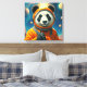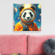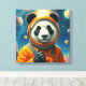 Denna livfulla digitala konst av Otis Porritt presenterar en slående närbild av en pandabjörn i en astronautkaskett. Verkets dynamiska, strukturerade estetik påminner om impastomaleri och sprudlar av djärva färger. Pandans ansikte, framställt med tjocka penseldrag i gult, svart och vitt, stirrar intensivt med genomträngande röda ögon. Kasketten pryds av livfulla ringar i rött, gult och blått. Bakgrunden är en livlig uppdelning mellan stänkande gult och stillsamt blått, prydd med lekfulla grafiska element och droppande målarfärger, vilket skapar en kraftfull och energisk komposition.