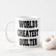 Mugg med citatet "Världsmästare Quilter" är perfekt för alla underbara filter.