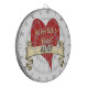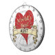 En röd hjärta med ett guld- band som hedrar en världs bäst moster