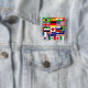 Mångfald och enighet med denna pulserande knapp med en samling överlappande flaggor. En färgstark perfekt för ryggpaket, jacka eller pinsamlingar. Visa ditt stöd för global kultur och anslutning var du än är.