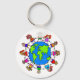 Cute tecknad illustrerar en grupp av lycklig och olika små pojkar och flickor från stick figur som håller i händer värld runt. Anpassa enkelt och välj en egen bakgrund färg eller lägg till text. Bild finns tillgänglig på olika presenter och produkter.
